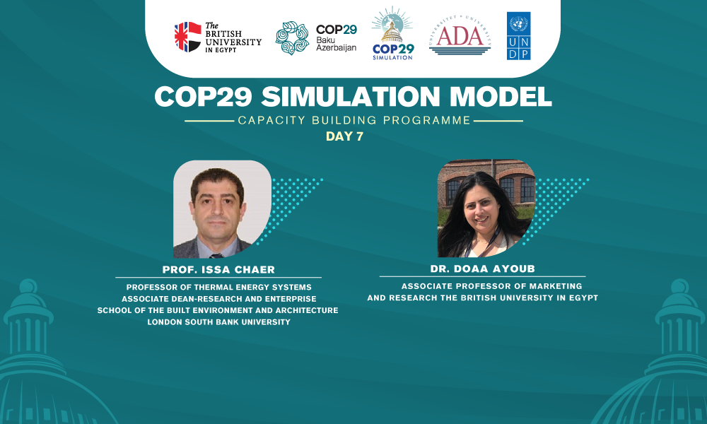 The second session, presented by Dr. Doaa Ayoub, Associate Professor of Marketing and Research at The British University in Egypt, explored the role of Artificial Intelligence (AI) in climate research. Dr. Ayoub engaged participants by discussing how AI can be used to enhance climate models, refine simulations, and improve predictions of extreme weather events. She also highlighted AI’s potential in structuring data, summarising academic papers, and performing complex data analysis. Dr. Ayoub concluded by emphasising that while AI is a powerful tool, it does not replace human input.