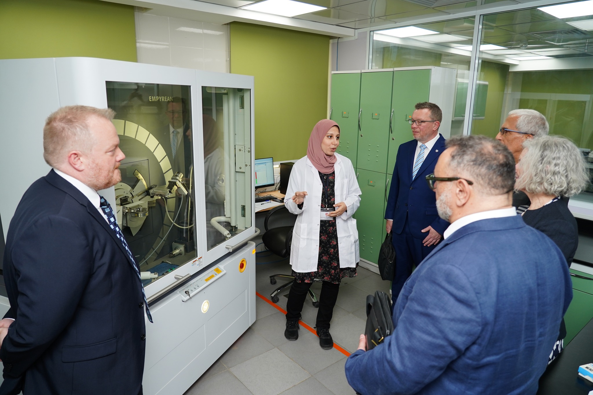 Our University hosted a distinguished delegation from our UK Academic Partner, Manchester Metropolitan University (MMU), comprising three Vice-Presidents and the Head of International Partnerships, to discuss our existing partnership and further areas of mutual collaboration. The delegation, comprising Professor Jenny Watling, Vice-President of International, Professor Martyn Evans, Vice-President of the Faculty of Arts and Humanities, Professor Saul Becker, Vice-President of the Faculty of Health and Education, and Mr. Ian Jones, Head of International Partnerships, met our President and Vice-Chancellor, Professor Mohamed Loutfi and senior members of the University’s teaching staff. The visit included a distinct tour of our campus which left our delegation impressed by the cutting-edge laboratories, advanced facilities, and state-of-the-art equipment available to our students.