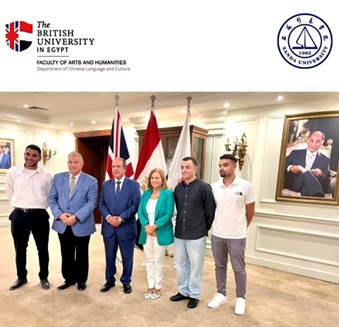 Prof. Mohamed Loutfi, President of the British University in Egypt, and prof. Shadia Fahim Dean of faculty of Arts and Humanities honor the students of the Chinese Language and Culture Department at British University in Egypt who returned from China after spending a second semester at Sanda University in Shanghai, China. It is worth noting that a scientific cooperation agreement was signed between the British University in Egypt and Sanda University, the largest private university in China in 2024.