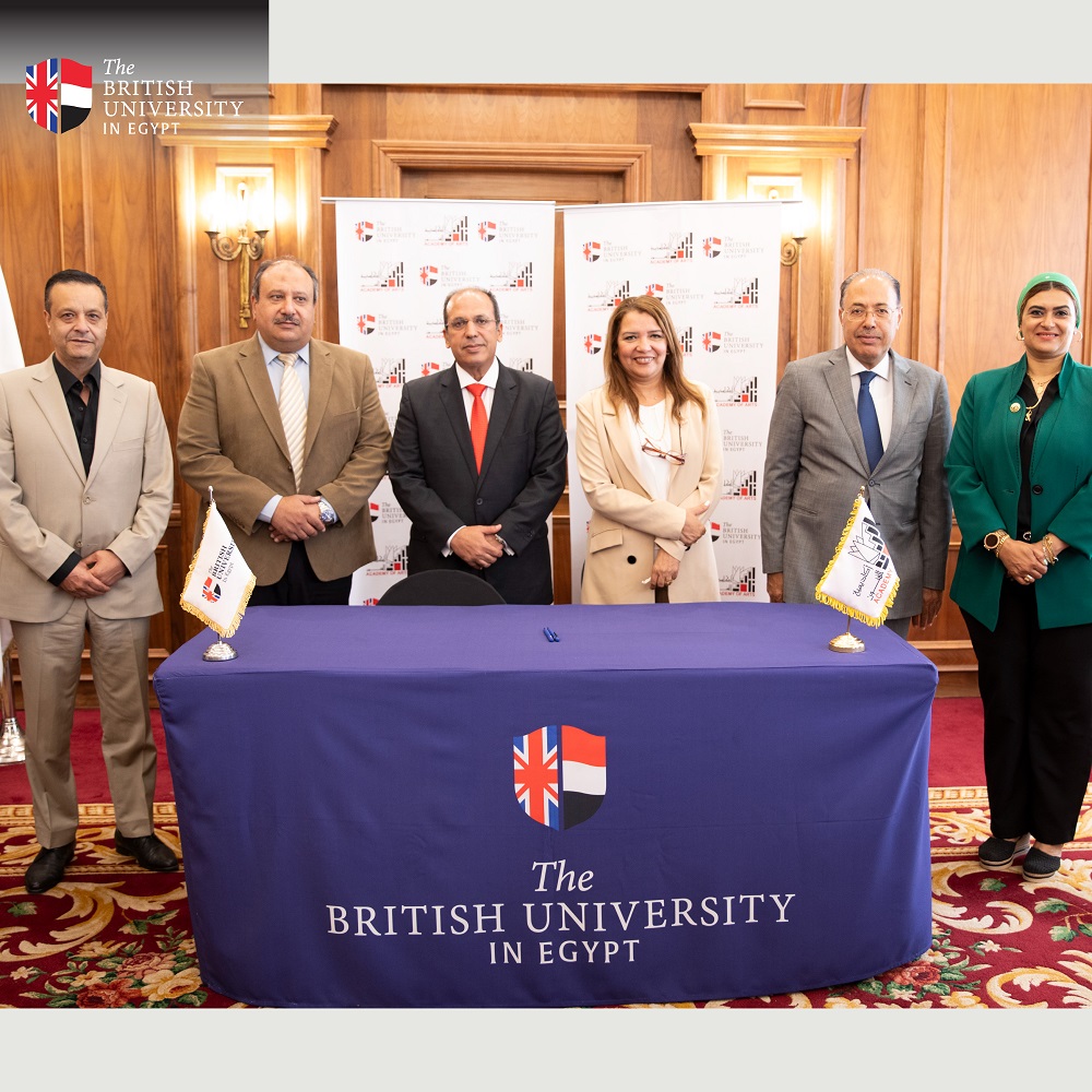 he signing took place in the presence of Professor Mohamed Shouman, Dean of the Faculty of Communication and Media at The British University in Egypt, Dr Hisham Gamal, Vice President of the Academy of Arts, Dr Hossam Mahsab, Dean of the Higher Institute of Childen's Arts, and Dr Samar Saeed, Dean of the Higher Institute of Folk Arts, along with esteemed Deans from The British University in Egypt.