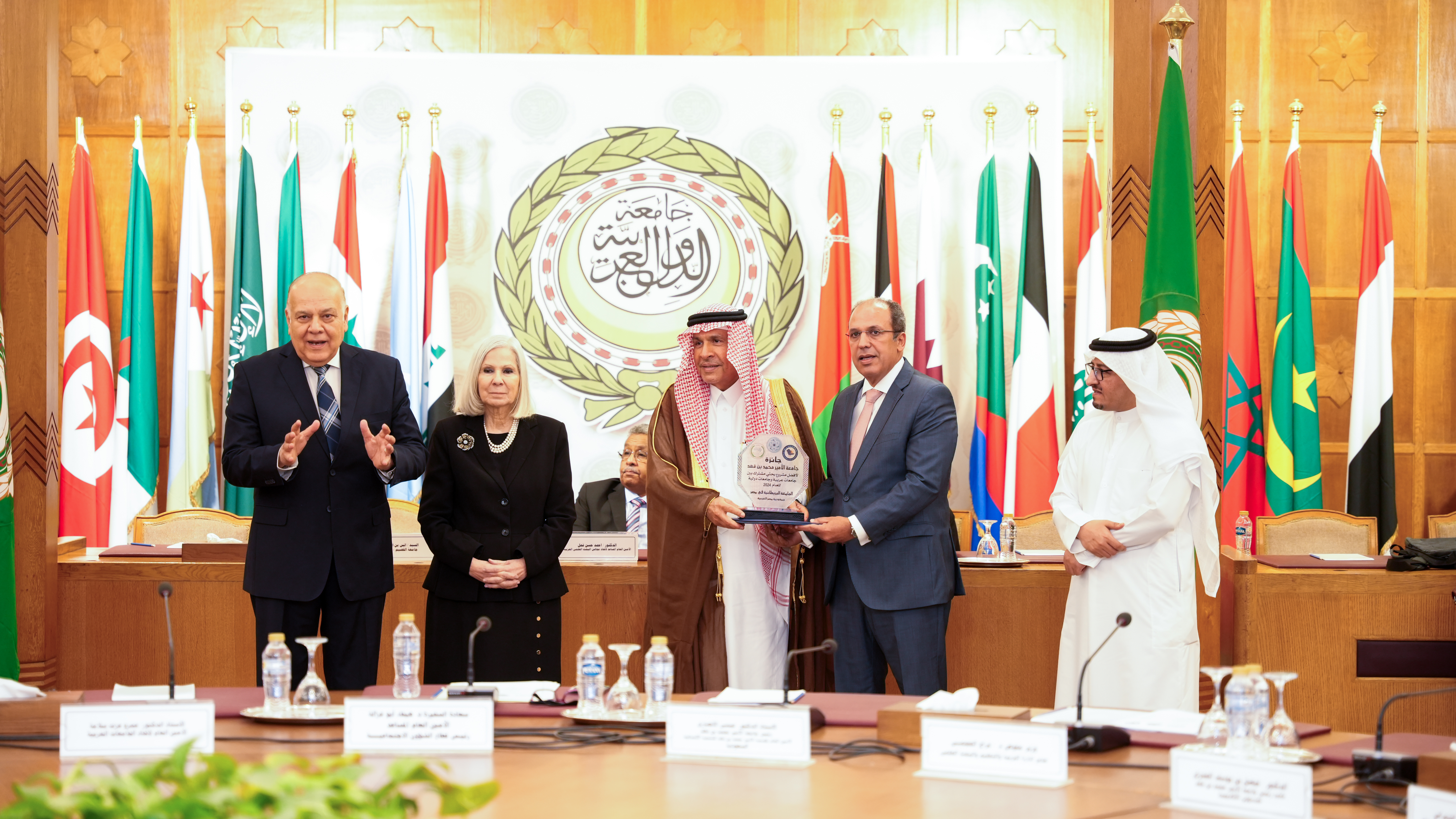 The award was presented at the Prince Mohammad Bin Fahd University Awards Ceremony for Best Scientific Production, held under the auspices of Mr. Ahmed Aboul Gheit, Secretary-General of the League of Arab States. Our President and Vice-Chancellor, Professor Mohamed Loutfi, proudly received the award, which was bestowed by Professor Amr Ezzat Salama, Secretary-General of the Federation of Arab Universities, and Professor Issa Al Ansari, President of Prince Mohammad Bin Fahd University. The event also saw the presence of H.E. Ambassador Dr. Haifa Abu Ghazaleh, Assistant Secretary-General of the League of Arab States and Head of the Social Affairs Sector.