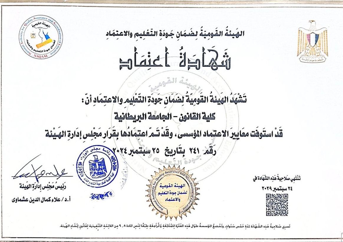 Distinguished by its unique Dual-Degree programme, the Faculty is the first in the region to offer a combined British and Egyptian Law degree. This curriculum provides students with comprehensive legal training in both Arabic and English, equipping them with the professional versatility required to navigate the challenges of globalization and securing a significant advantage in the competitive legal job market.