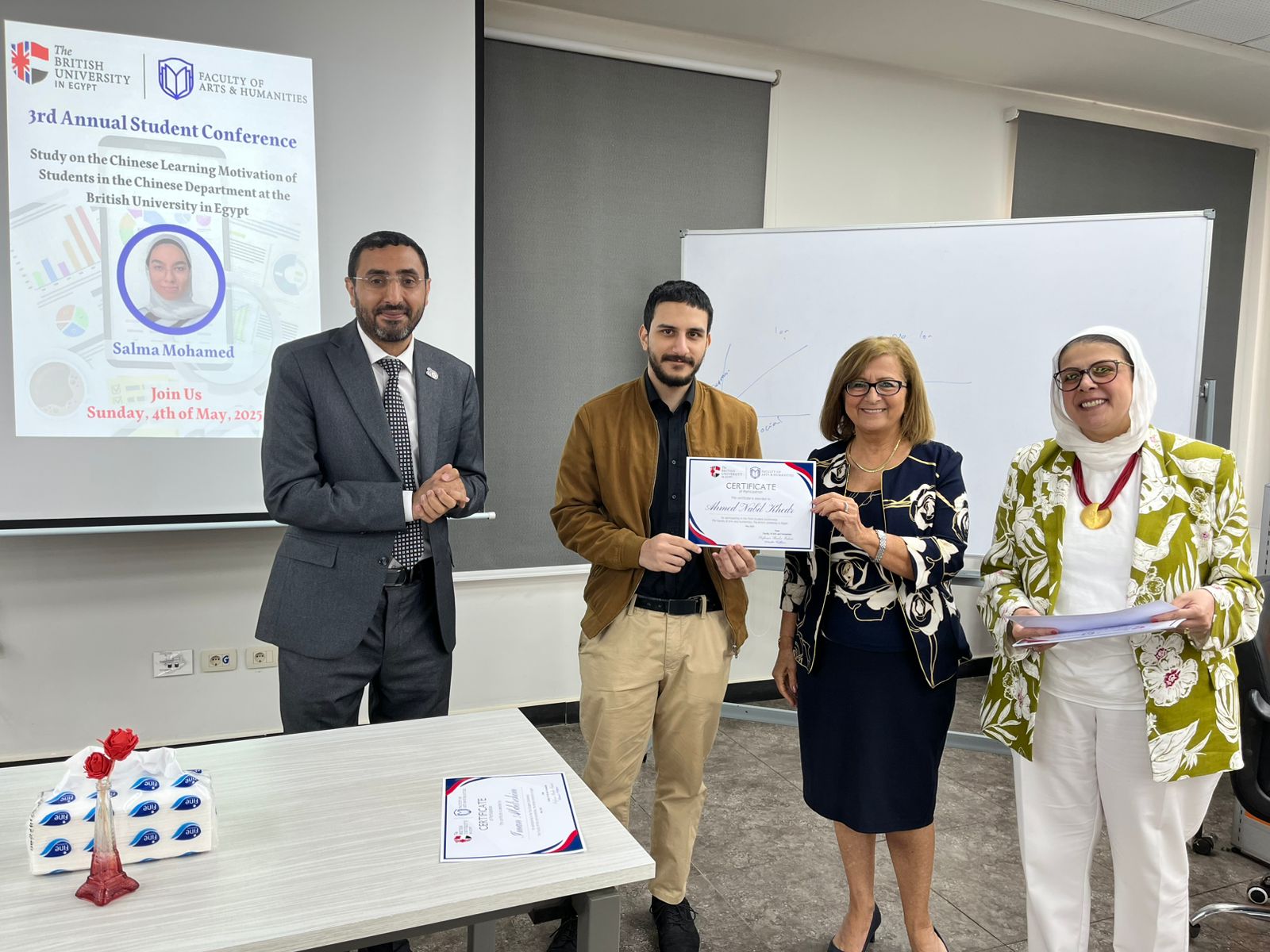 The Faculty of Arts and Humanities at the British University in Egypt proudly recognises the winners of the 3rd annual Student Research Conference, that took place on the 4th of May 2025, celebrating outstanding student and alumni research contributions.