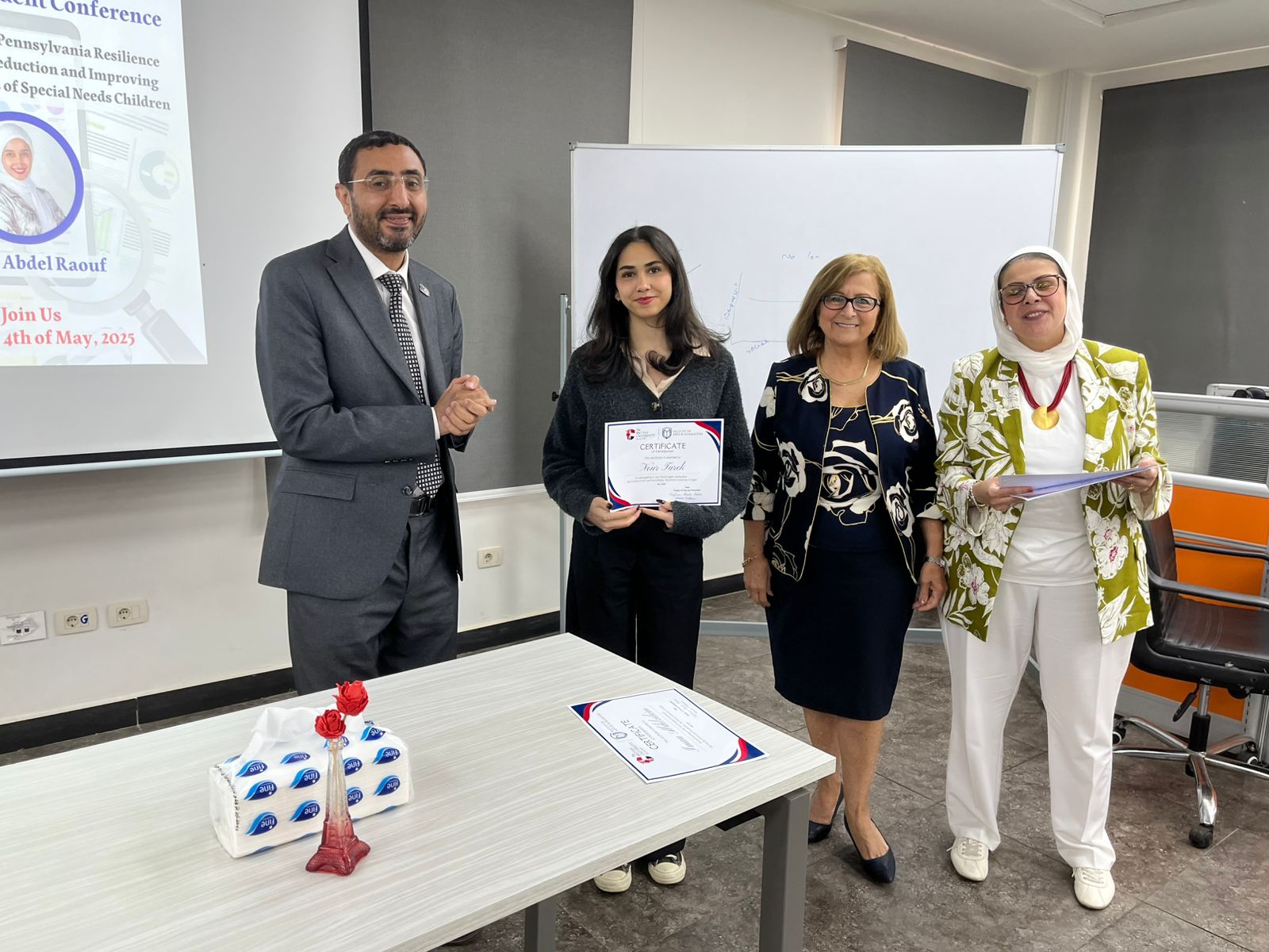 Senior Farah Abd El Raouf (Psychology) examined resilience training’s role in helping parents cope with stress, providing valuable insights into supporting families with special needs children.