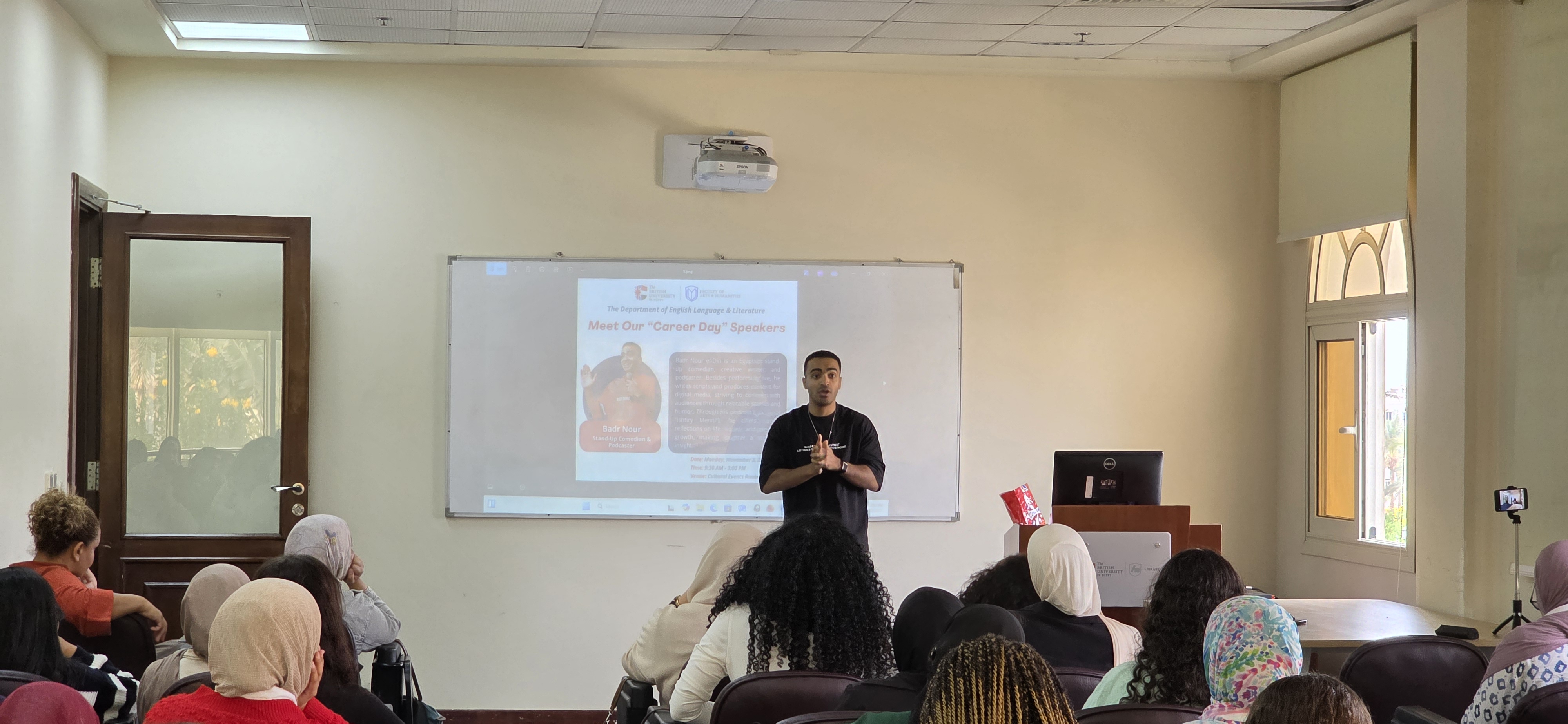 Under the auspices of Prof. Shadia Fahim, Dean of the Faculty of Arts and Humanities, the Department of English Language & Literature successfully convened its annual Career Day on Monday, November 3, 2025. The event was held in the Cultural Events Room of the BUE Library from 9:30 AM to 3:30 PM.