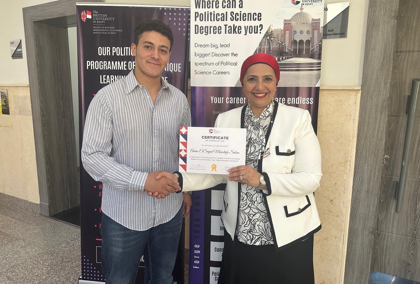 The discussion was proudly led by two of the department's degree year two students, Amen ElSayed and Basmallah Rawash, who both shared their experience with trying to balance academic excellence and social activeness.